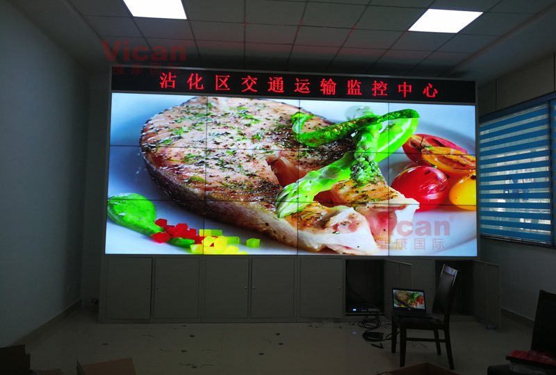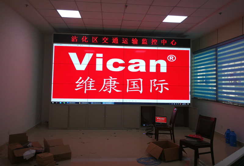 滨州市沾化区监控中心这套大屏采用3行4列、55寸拼接屏,超窄边设计、三星原装面板、拼缝仅有1.7mm,大屏幕显示清晰,主要用来视频监控系统显示。