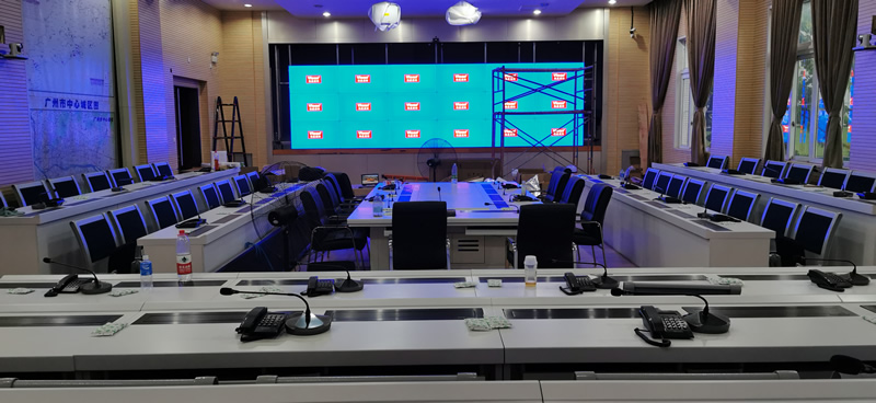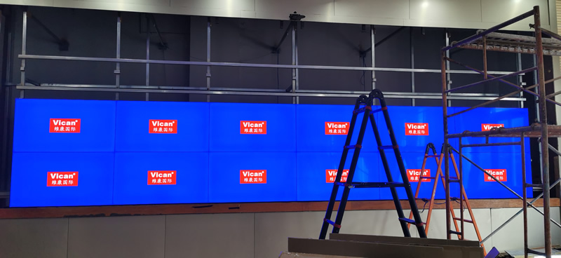 该案例是维康国际为广州某武警支队提供的一套会议大屏,由3行6列55寸液晶拼接屏组成,LG原装进口面板,双边拼缝仅有0.88mm,如上图所示。