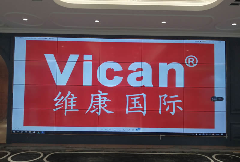 该案例中,维康国际为其提供一套商显拼接屏,主要用来宣传楼盘信息与广告发布,如上图所示,大屏幕由4x5拼接、55寸3.5mm液晶拼接屏组成,画面显示清晰亮丽,视觉震撼。
