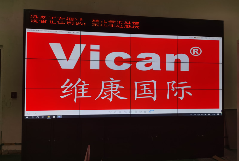 本案例中,维康国际为中国石油大学古镇口校区提高一套会议室显示屏,主要由3x4拼接、46寸1.7mm液晶拼接屏组成,如上图所示,画面清晰、双边拼缝较小,采用机柜式安装,更显高端大气。
