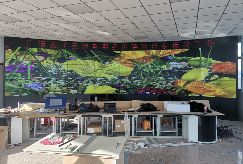 本案例中,维康国际为中腾环保提供一套指挥中心大屏,主要由3X8拼接、55寸3.5mm液晶拼接屏组成,大屏幕显示清晰亮丽,双边拼缝较小,采用机柜式弧形安装,更显高档大气,如上图所示,主要 用来显示监控画面及指挥调度。