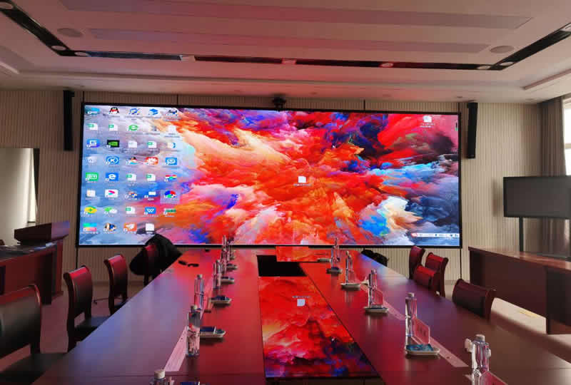 本案例中,维康国际为广州科学城某企业提供一套会议LED显示屏,采用桌彩小间距LED系列,点间距为P1.8,COB封装技术,画面清晰亮丽。