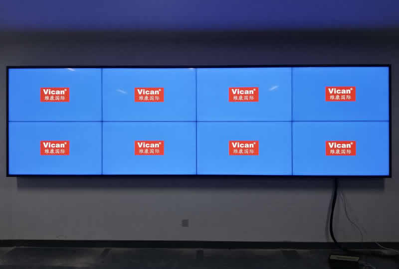本案例中,维康国际为佛山某民政局提供一套显示大屏,安装在办事大厅边上,采用2x4的55寸液晶拼接屏,LG1.8mm原装面板,大屏画面清晰亮丽,一体化显示效果好。