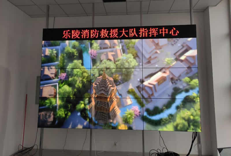 本案例中,维康国际为乐陵市消防救援大队提供一套监控大屏,主要由3x3、55寸3.5mm液晶拼接屏组成,采用LG原装面板,大屏显示清晰、产品性能稳定。