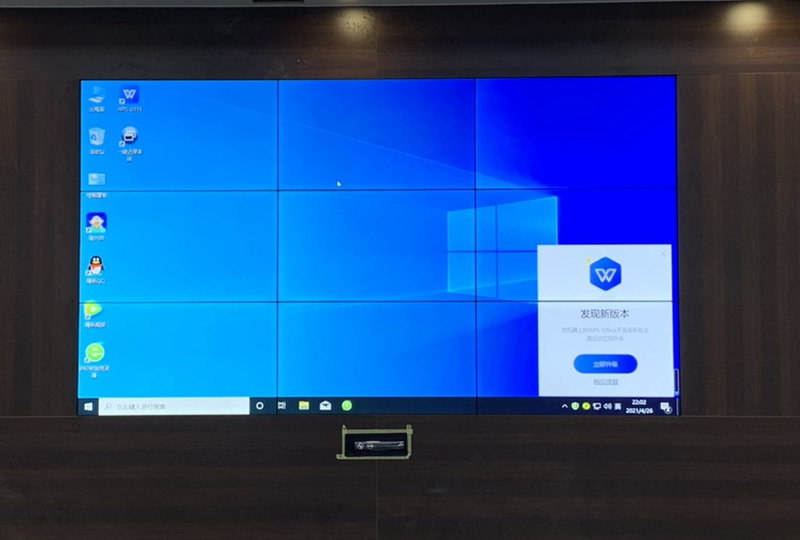 本案例中,维康国际为农商银行微山分行提供一套办公室显示大屏,由3x3拼接、46寸3.5mm液晶拼接屏组成,大屏幕显示清晰,白平衡效果好。