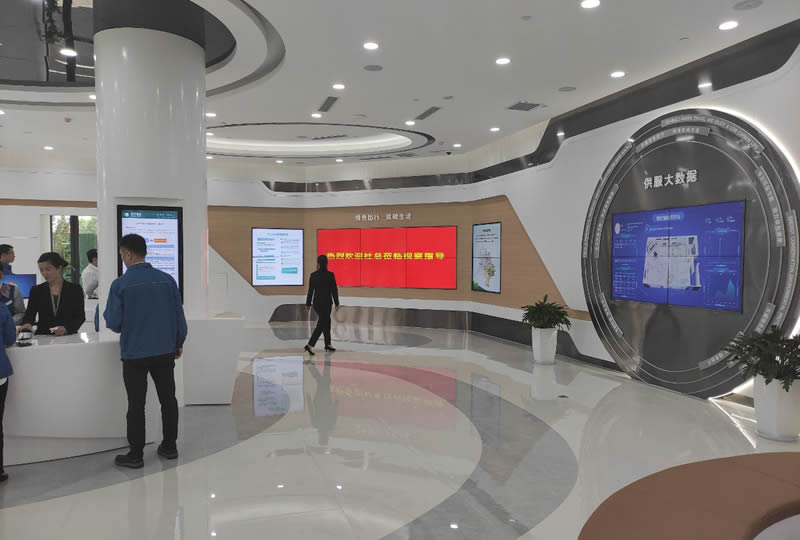 本案例中,维康国际为某国家电网展厅提供多套显示大屏,由液晶拼接屏、网络广告机、触摸一体机组成,如上图所示。