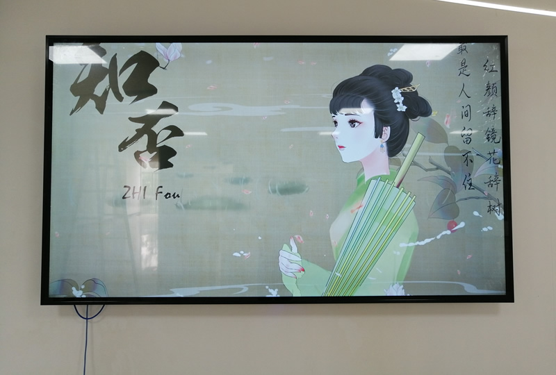 本案例中,维康国际山东大学长清校区提供了一套会议大屏,采用100寸会议一体机,大屏幕4K高清显示,显示尺寸为2158.848mm x 1214.352mm,采用壁挂式安装,主要用来会议显示使用。