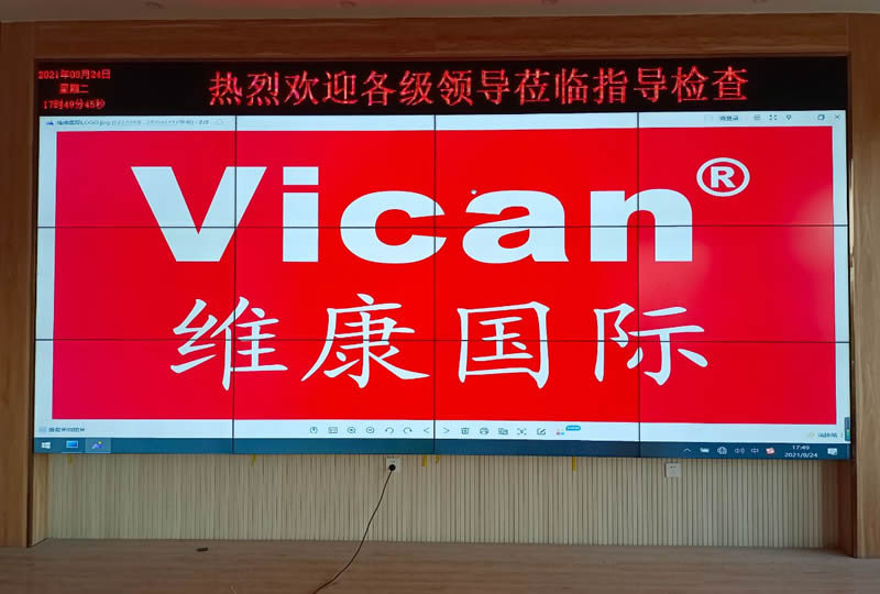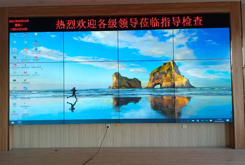 本案例中,维康国际为广东清远某中学提供一套高清会议大屏,采用3X4的55寸液晶拼接屏,拼缝为3.5mm,大屏幕美观大气、显示效果好。