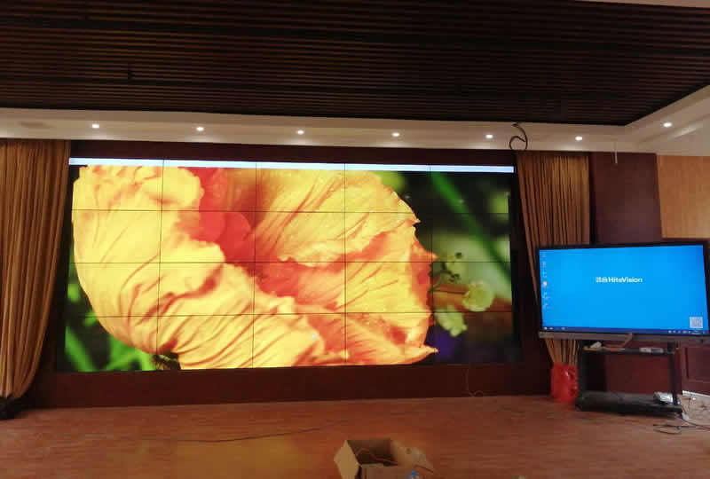 本案例中,维康国际为福建泉州某服装厂提供一套室内的舞台显示大屏,采用4x5拼接、55寸液晶拼接屏,LG超窄边1.8mm液晶面板,大屏幕画面清晰,一体化显示效果好。