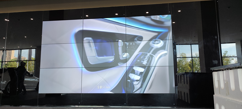 本案例中,维康国际为宁德市某汽车4S店提供一套展厅显示大屏,采用3x拼接、55寸液晶拼接屏,双边拼缝为3.5mm,大屏幕显示清晰、拼缝小、白平衡效果好,有着很好的视觉体验效果。