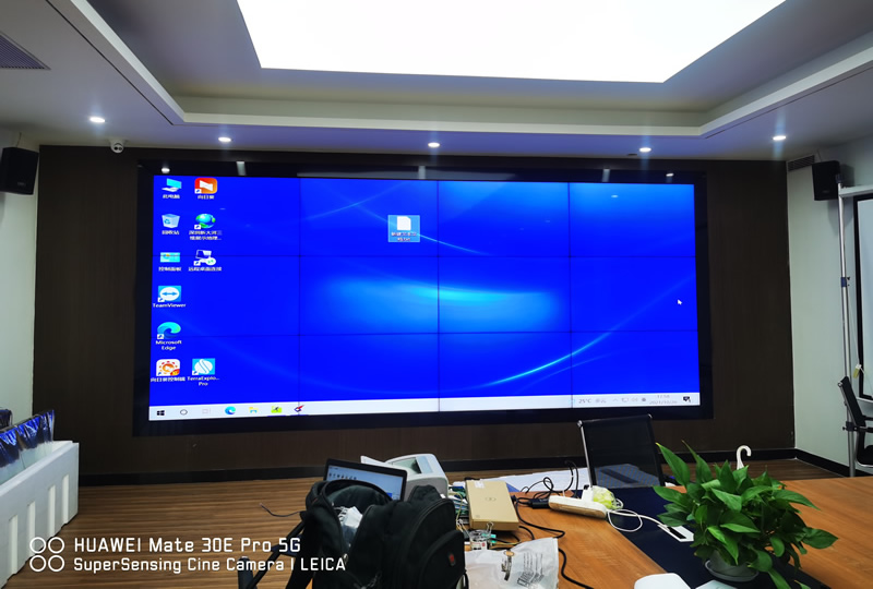 本案例中,维康国际为深圳市大鹏水利局提供了一套会议显示大屏,由3x4、55寸液晶拼接屏组成,屏体为LG1.8mm原装面板,采用前维护式安装。