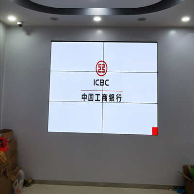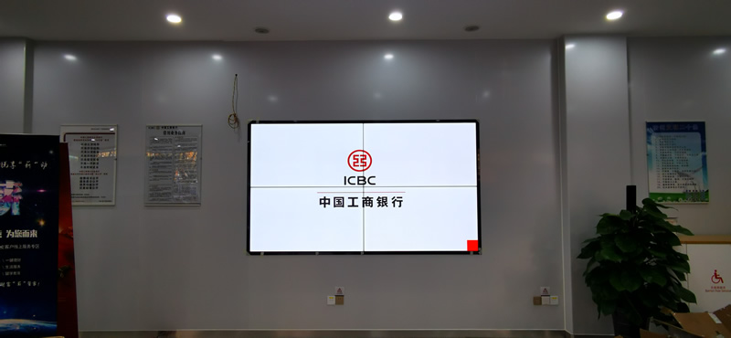 本案例中,维康国际为中国工商银行某分公司提供多套显示屏,采用46寸和55寸超窄边液晶拼接屏,根据不同的区域显示需求,选择3x3、2x3、2x2等多种拼接方式,大屏幕显示清晰、分辨率高、色彩丰富、性能稳定。
