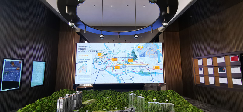 本案例中,维康国际为广州市金沙洲某售楼中心提供了一套全彩LED显示屏,如上图所示,采用P2全彩LED系列,大屏幕画面显示清晰,分辨率高,有着很好的视觉体验效果。