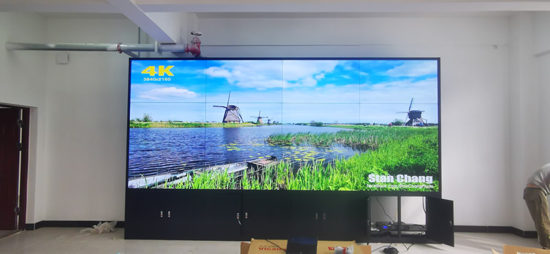 本案例中,维康国际为毫州市某中学提供了一套会议大屏,由3行4列、55寸液晶拼接屏组成,采用0.88mm超窄边液晶面板,有着很好的大屏幕画面一体化显示效果。