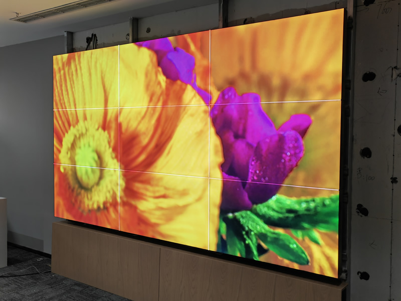 本案例中,维康国际为北京家宅融智科技有限公司提供了一套高清无缝大屏,由3行3列、46寸电子无缝拼接屏组成,如上图所示,大屏幕画面的一体化显示很好,没有黑色边框的影响,可以展现出更好的视觉效果。