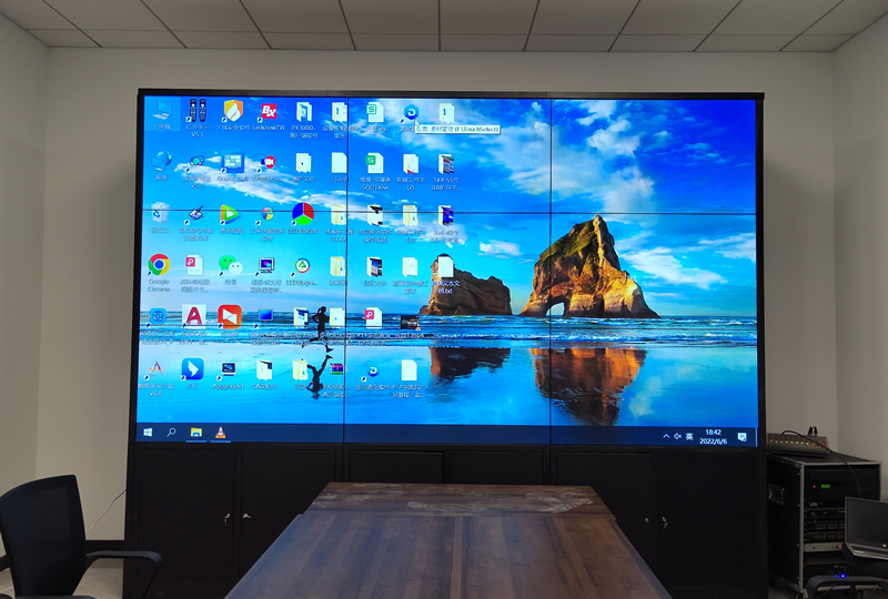 本案例中,维康国际为山东第一医科大学提供一套会议室显示屏,由于3行3列的55寸lg液晶拼接屏组成,采用机柜式安装,大屏幕画面显示清晰,尺寸超大。