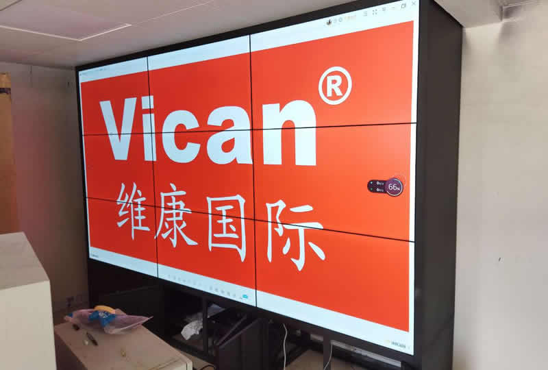 本案例中,维康国际为青岛市海宇城提供一套会议大屏,由于3行3列、46寸拼接屏组成,采用46寸3.5mm京东方原装面板,大屏幕显示清晰亮丽。