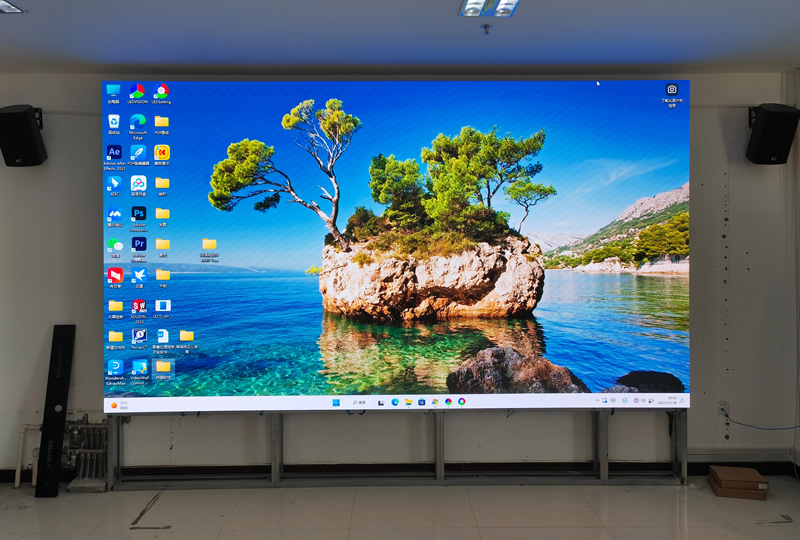 本案例中,维康国际为新疆塔城某公安局提供了一套LED会议显示大屏,如上图所示,采用P1.25小间距LED系列,面积大概十多平方米,大屏幕分辨率高,显示清晰,视觉效果好。