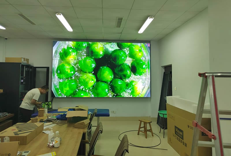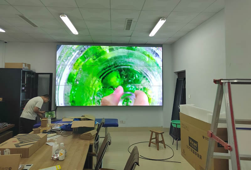本案例中,维康国际为东营市第十三中学提供一套办公室显示大屏,采用3行3列、55寸液晶拼接屏,0.88mm超窄边LG面板,大屏幕显示清晰,色彩丰富,一体化显示效果好。