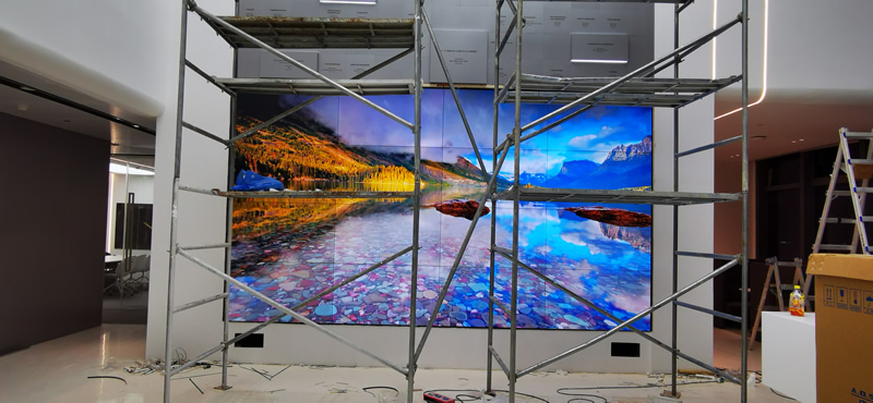 本案例中,维康国际为深圳影石创新公司提供一套展厅LCD大屏,由4x4拼接、55寸液晶拼接屏组成,屏体采用0.88mm窄边LG面板,大屏幕显示清晰,一体化效果好。
