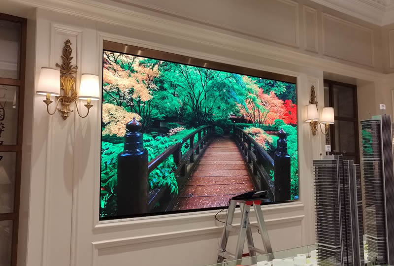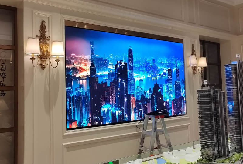 本案例中,维康国际东莞市万科御景园营销中心提供一套大屏,采用小间距LED显示屏,大屏幕画面清晰,色彩丰富,一体化显示效果好。