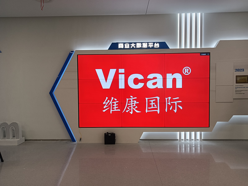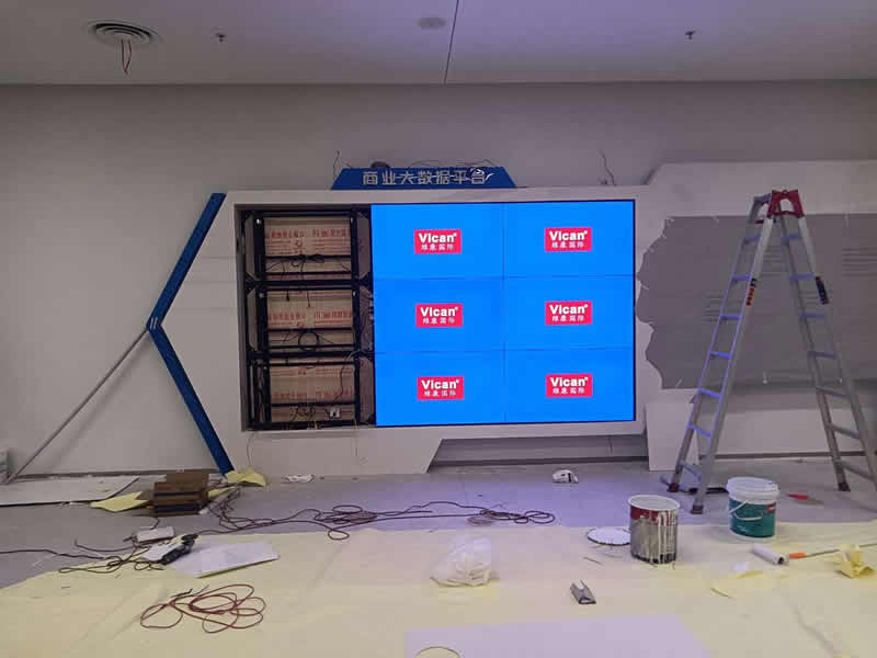 本案例中,维康国际为苏州市某企业 提供一套商业大数据平台显示大屏,采用3行3列、55寸液晶拼接屏,双边拼缝仅有0.88mm,内嵌前维护支架安装,更美观、时尚,后期维护也更便捷,大屏幕显示清晰,色彩丰富,一体化显示效果很好。