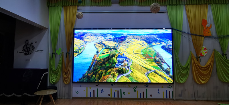 本案例中,维康国际为东莞市某幼儿园提供一套高清LED大屏,采用P1.86小间距LED系列,显示面积约10平方米,大屏幕显示清晰,一体化效果好。