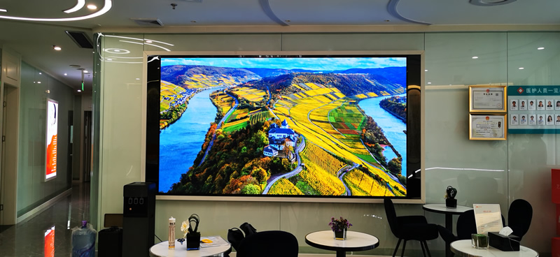 本案例中,维康国际为深圳前海湾某医院提供一套高清大屏,采用P1.86小间距LED,大屏幕面积约10平米,画面显示清晰细腻,视觉体验效果很好。