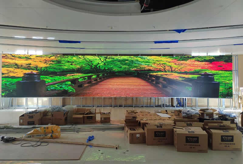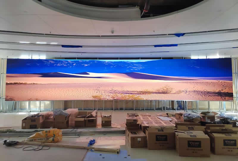 本案例中,维康国际为淮南市某企业展厅提供一套高清显示屏幕,采用P1.25的COB小间距LED显示屏,屏幕尺寸约30多平方米,画面显示十分清晰,色彩丰富,视觉体验效果好。