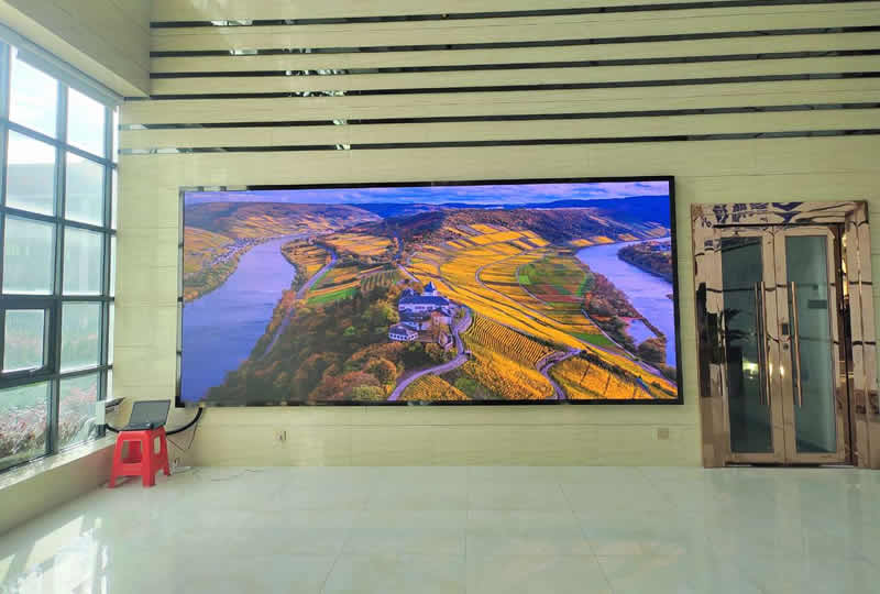 本案例中,维康国际为九江市某企业写字楼提供一套大厅LED信息大屏,采用P2全彩LED,约十多平方米,大屏幕显示清晰,色彩丰富,视觉体验效果好。