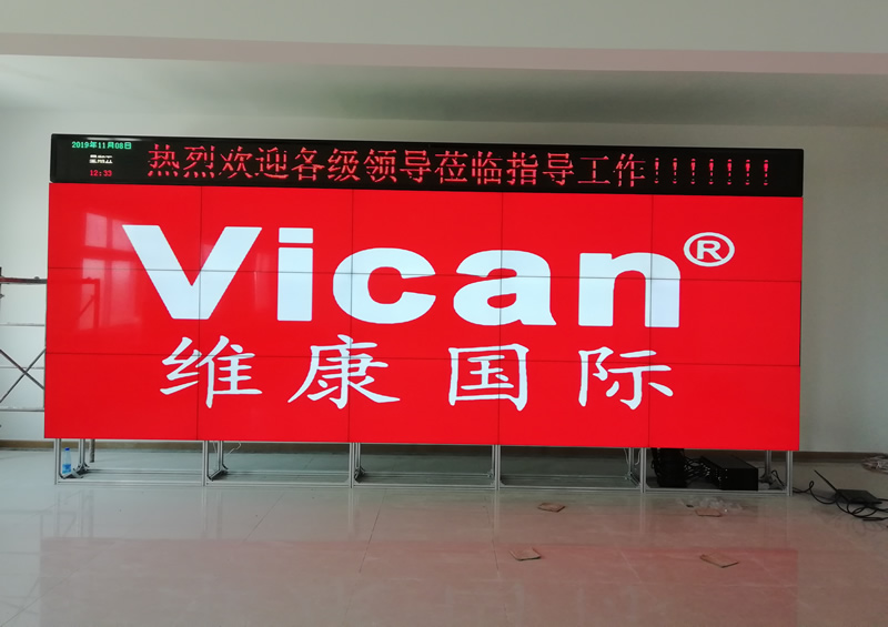 本案例,是维康国际为湖北京山精细化工提供的3x5拼接、55寸液晶拼接屏,LG原装面板,双边拼缝仅有1.8mm,大屏画面清晰、一体化显示效果好。