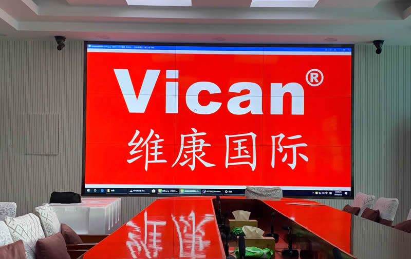 本次案例,是由维康国际为广西梧州某政府部门会议室提供的一套拼接大屏,采用3x3拼接、55寸液晶拼接屏,拼缝仅有0.8mm,有着出色的画面显示效果,采用包边式安装,让整体会议室显得更高档、大气。