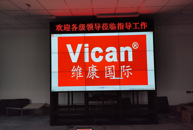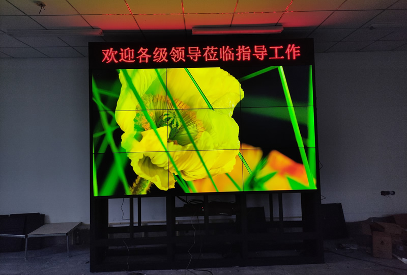这套大屏安装在陕西澄城储备库,3行3列、46寸3.5mm液晶拼接屏,采用机柜式安装。