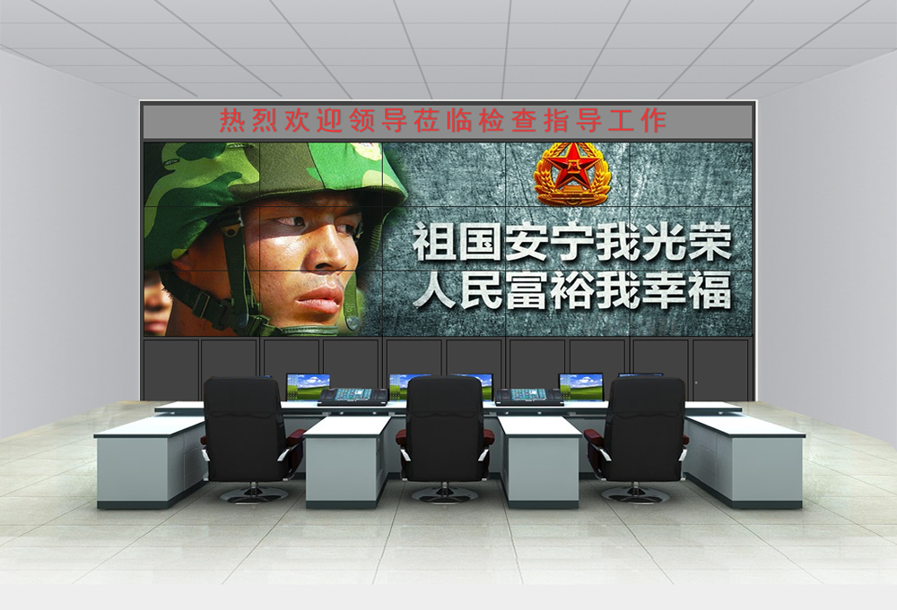 3行5列49寸监控拼接屏效果尺寸图,机柜式+LED条屏