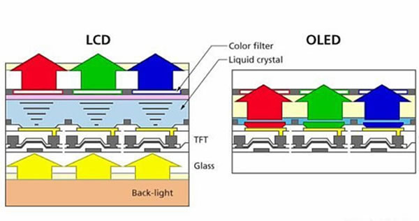 构成材料:OLED结构简单,工序少,蓝光材料衰变致寿命较短