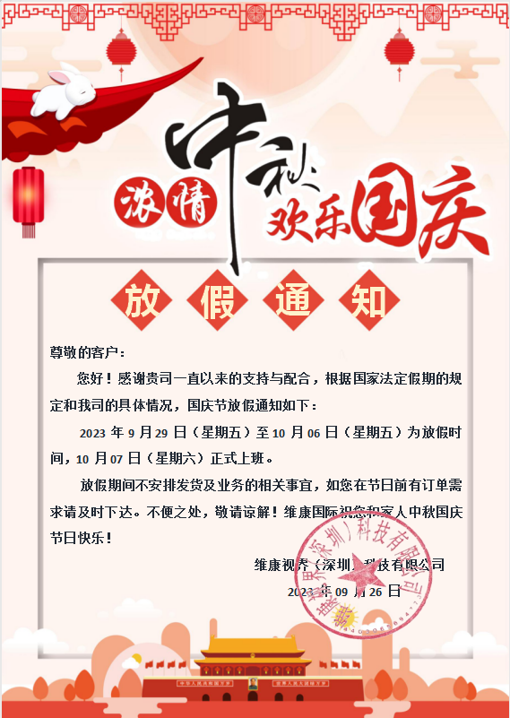 维康国际祝您与家人中秋与国庆节日快乐!