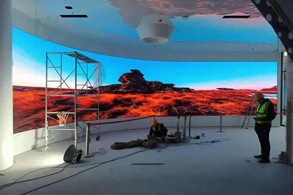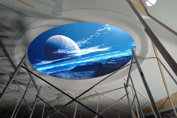 这种安装方式主要应用在展厅、展馆这些展览场合,即是在头顶上方安装LED屏幕,可以以圆形、椭圆形、矩阵等结构安装,给观众带来更多新奇的体验。