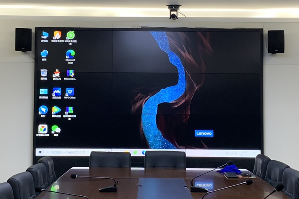 因为是用于会议显示,所以信号源多是电脑信号,一般整屏只显示一个画面,主要显示视频、PPT、图片等,所以对于显示效果的要求要比监控显示高。以大尺寸为首选,建议选择55寸拼接屏,因为尺寸越大,所使用的拼接数量越少,可以减少拼缝数量,一定程度上会提升观看效果。另外,大尺寸面板也是会议拼接屏发展的方向。