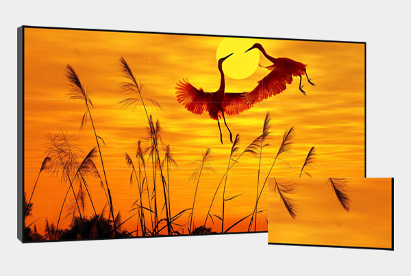 由于液晶面板本身的特殊构造,导致液晶屏不能实现无边框生产,所以我们看到常规的液晶面板都有不同大小的边框,两块拼接后中间的黑边部分就是我们常说的拼缝,这种拼缝有大有小,拼接后双边的常规拼缝有3.5mm,超小拼缝可以做到0.88mm,这已经是现在的技术极限,虽然拼缝已经下降到1mm以下,但是我们在观看时还是有一条比较细小的黑线。如果是用在视频播放或者监控显示中影响不大,但是如果用来播放文本文档或者浅色的图像则会产生一定的影响。