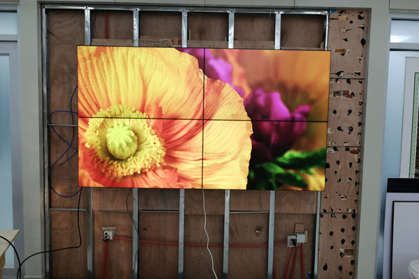 拼接屏是通过多块屏拼接形成的一种大尺寸的显示屏,它是一种工业级显示器,它的优势是清晰度高,而且亮度适中,色彩比较丰富,它就相当于拼接大了的电视,它可以以单块屏为单位一个视频会议画面显示在一块屏内,也可以单屏分割同步显示多个视频会议画面,常用于中小型会议室内。
