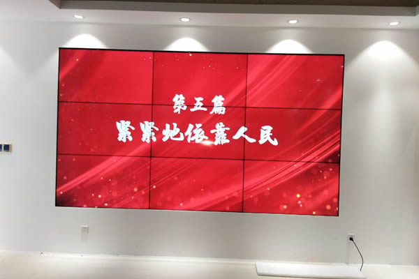 由于液晶拼接屏的常规尺寸只有46寸、49寸、55寸这三种,如果想要做到150寸的大屏幕,那么就要以9块屏的3x3拼接方式组成,如上图所示,一般采用49寸或55寸液晶拼接屏。