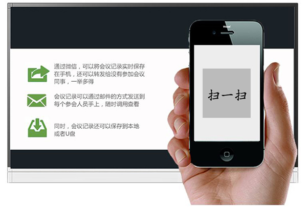 手机、电脑会议预约,参会扫二维码签到会议过程智能记录,生成内容上传云端,并支持手机和电脑查看。