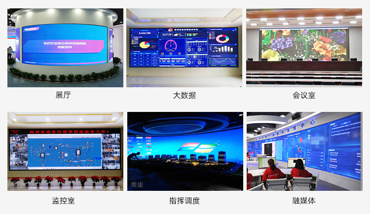 P1.2小间距led显示屏由于点间距小,所以大多应用在室内的高端大屏显示领域,如企业展厅、大数据显示、会议室、指挥中心、电视台融媒体等。