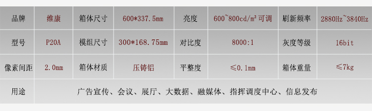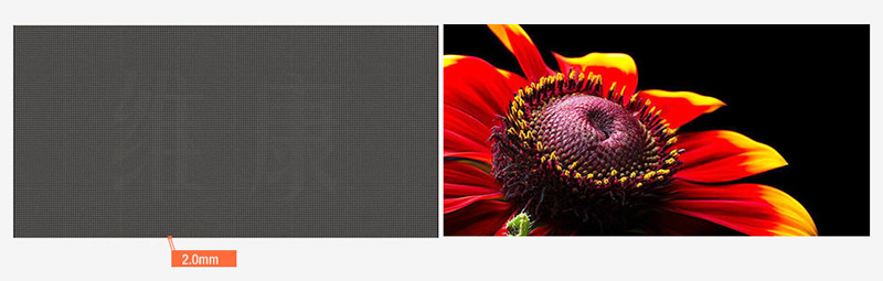 点间距只有2.0mm,采用SMD封装而成,主要应用于室内全彩显示大屏场合。