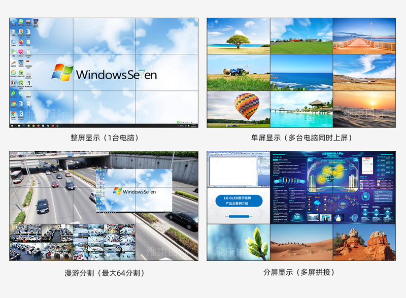 维康国际提供各种面板、各种尺寸与拼缝的拼接屏产品,除了46寸拼接屏0.88mm以外,还提供55寸0.88mm、55寸1.8mm和1.7mm等各种规格的产品,其中面板多以LG、京东方等为主。