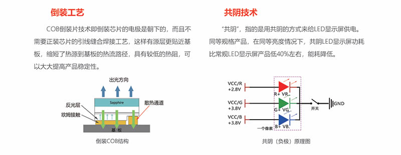 全倒装工艺配套共阴方案,稳定性好,低耗节能