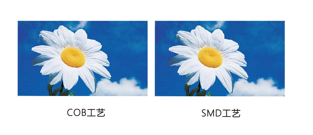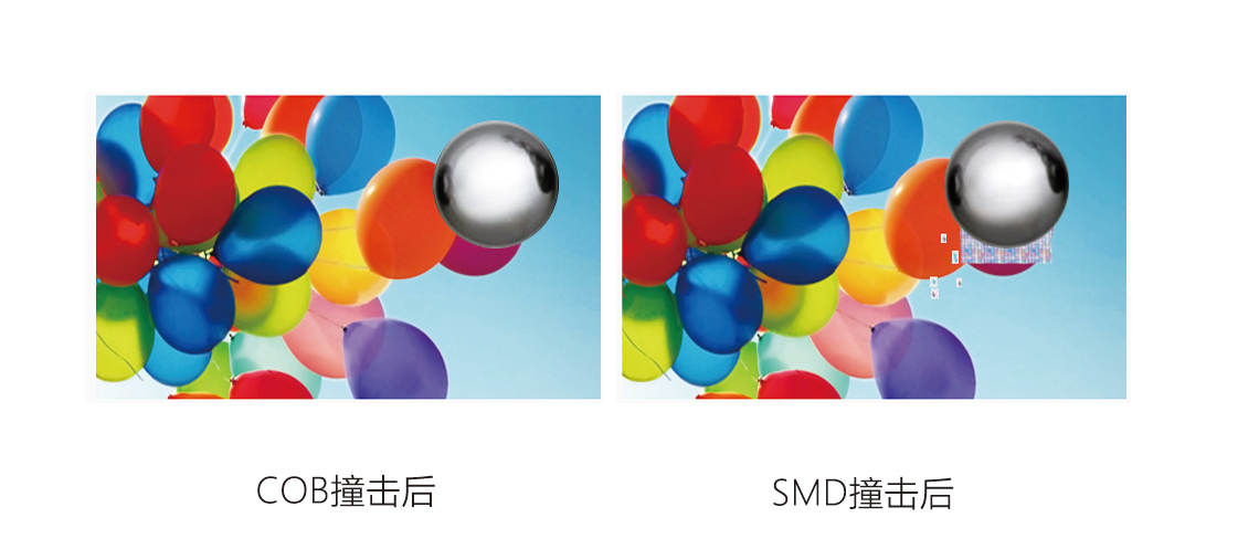 COB工艺相对于SMD的工艺的LED屏,防护性能级别更高??煞浪?、防磕碰、防潮、防撞击、防氧化、防盐雾防静电、易清洗等优点,大大减少了产品在运输、安装和使用过程中因碰撞产生的死灯、接触不良等问题。
