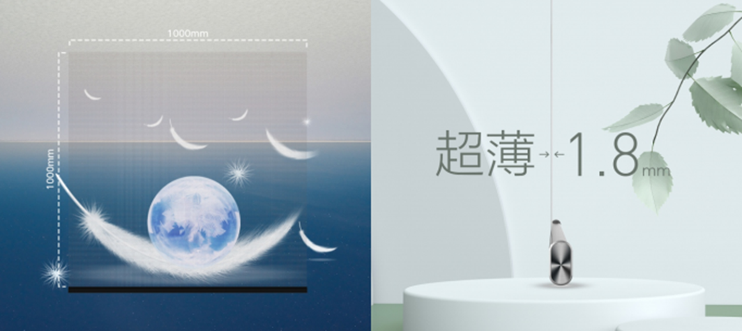 整屏透明无框架; 无缝大面积拼接; 背面隐形无泛光 。