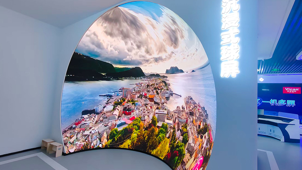 LED 显示屏通过无缝拼接技术,实现超大尺寸的显示画面,消除了拼接缝隙对视觉的干扰。打造出近乎180°视野范围的沉浸式显示效果,让观众完全被画面所包围。